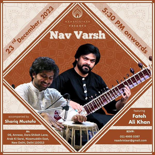Meet Fateh Ali Khan, the sixth-generation artist from a family renowned for their expertise in Sarangi playing from the Moradabad Gharana. His musical journey began at the age of seven with vocal training under his grandfather, the revered sarangi maestro, Late Ustad Siddique Ahmed Khan. Discovering his passion for the "Sitar," Fateh Ali Khan honed his skills under the guidance of the accomplished sitar maestro Shri Satish Kumar. Continuing his musical education, he further refined his artistry under the mentorship of Late Ustad Shamshuddin Faridi Desai and his father, Ustad Ghulam Sabir Khan.